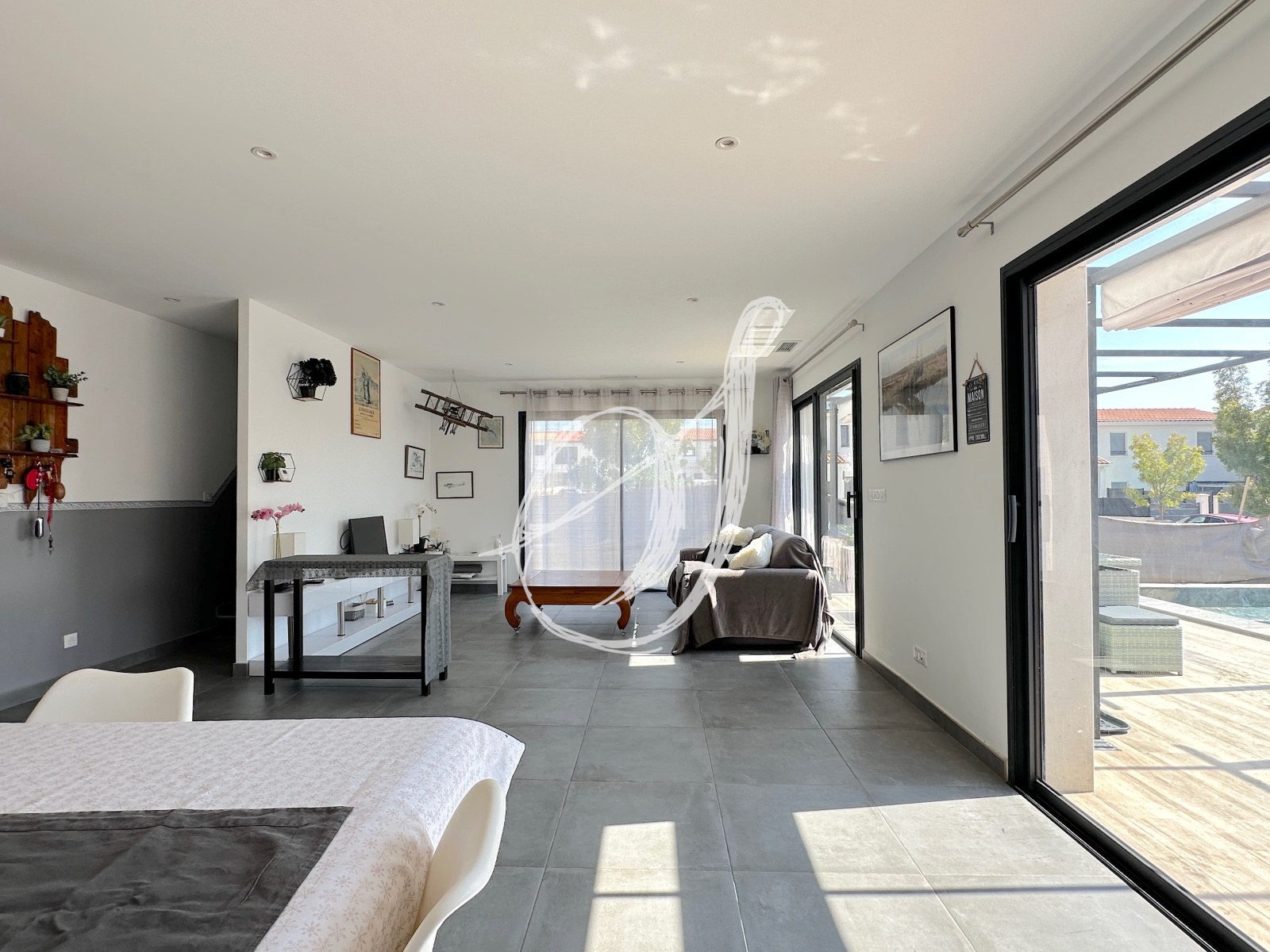 Cette villa de 2021 offre un espace de vie de plus de 57 m2 comprenant une cuisine entièrement équipée de 16,50 m2, le tout ouvert par 4 baies vitrées sur terrasse & jardin. Au rez-de-chaussée, on retrouve également une première suite disposant de sa salle de bains privative (avec douche & baignoire). À l'étage, le palier dessert un vaste solarium & deux autres suites : l'une de 19 m2 avec sa salle d'eau / WC & l'autre de près de 18 m2 avec sa salle de bains / WC. Cette construction traditionnelle en briques alvéolaires sur vide sanitaire est entièrement équipée de climatisation réversible gainée (système de zoning) & d'un cumulus thermodynamique (RT 2012). La piscine traditionnelle de 8 x 4 mètres est traitée par électrolyse. Le jardin nécéssite des aménagements, notamment de végétalisation.
