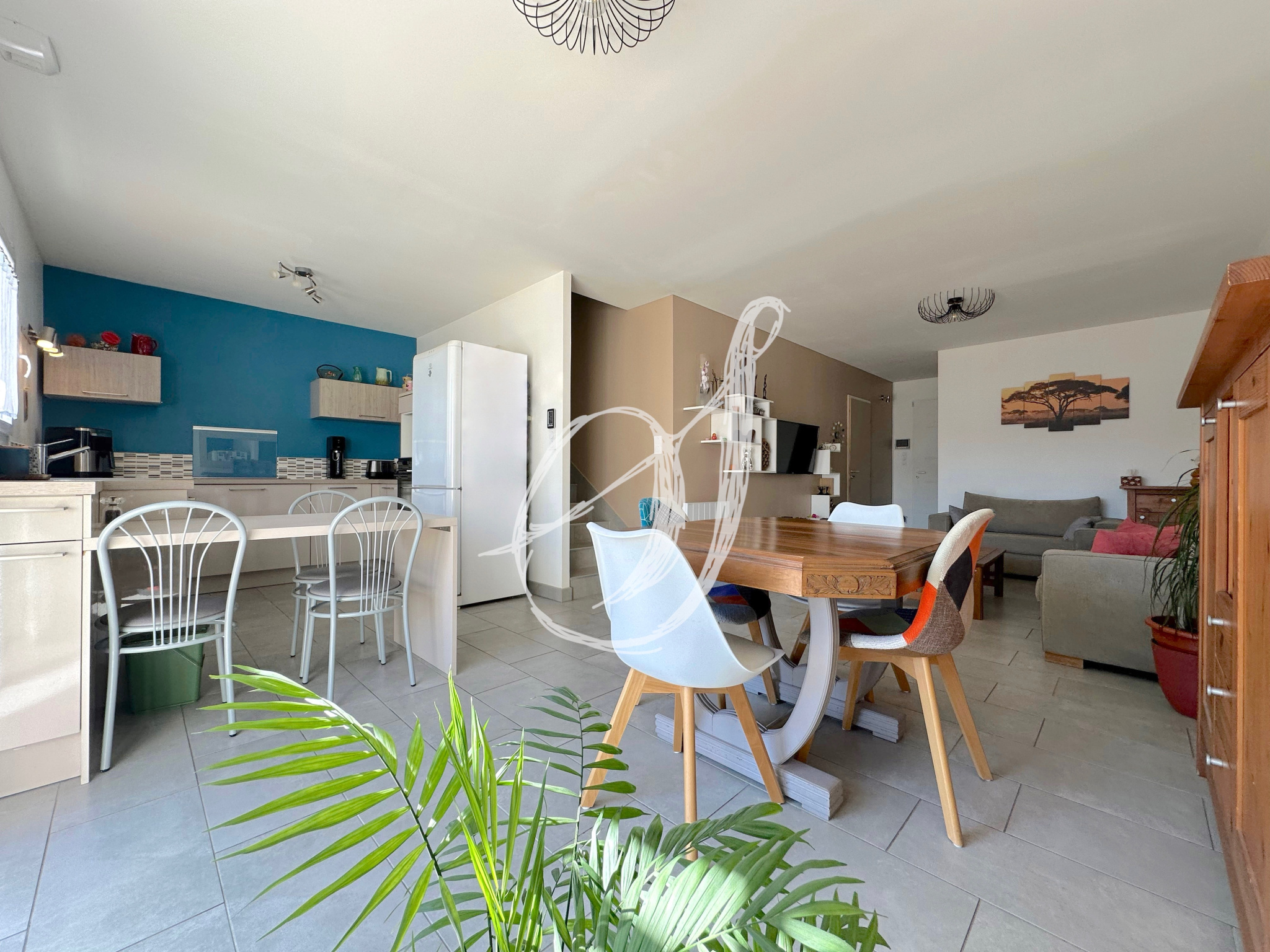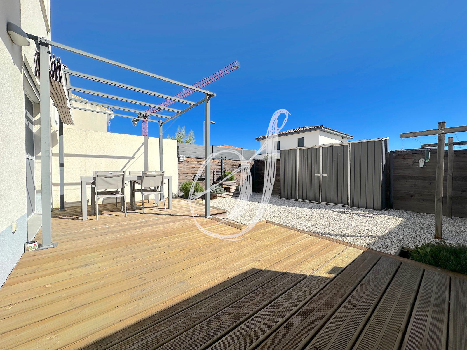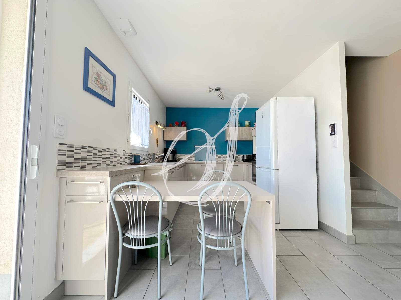Dans un quartier résidentiel calme, cette villa de 2016 répond à la RT 2012. Au rez-de-chaussée, l'espace de vie de plus de 33 m2 bénéficie d'une cuisine entièrement équipée & s'ouvre sur terrasse & jardin. L'entrée dessert également des WC avec espace buanderie & un garage de près de 16 m2. À l'étage, on retrouve 3 chambres équipées de climatisation réversible, dont une avec dressing & une grande salle de bains avec WC. Le bien comprend deux emplacements de stationnement extérieurs en plus du garage.