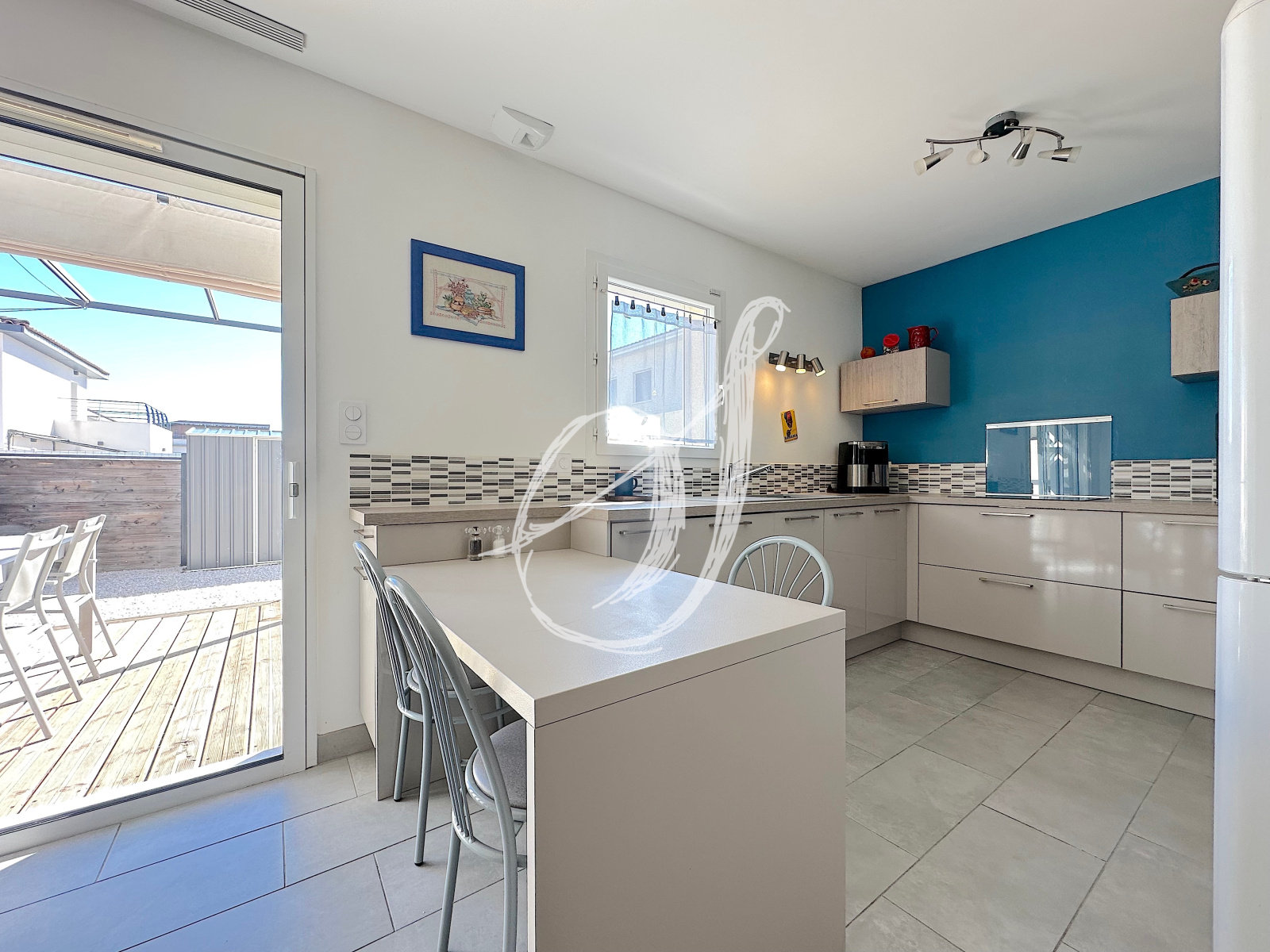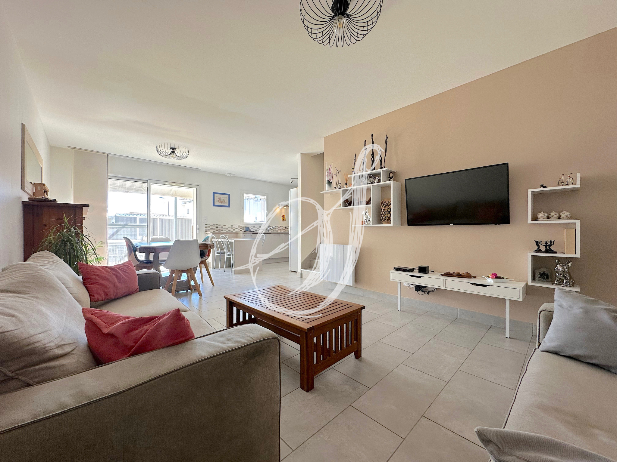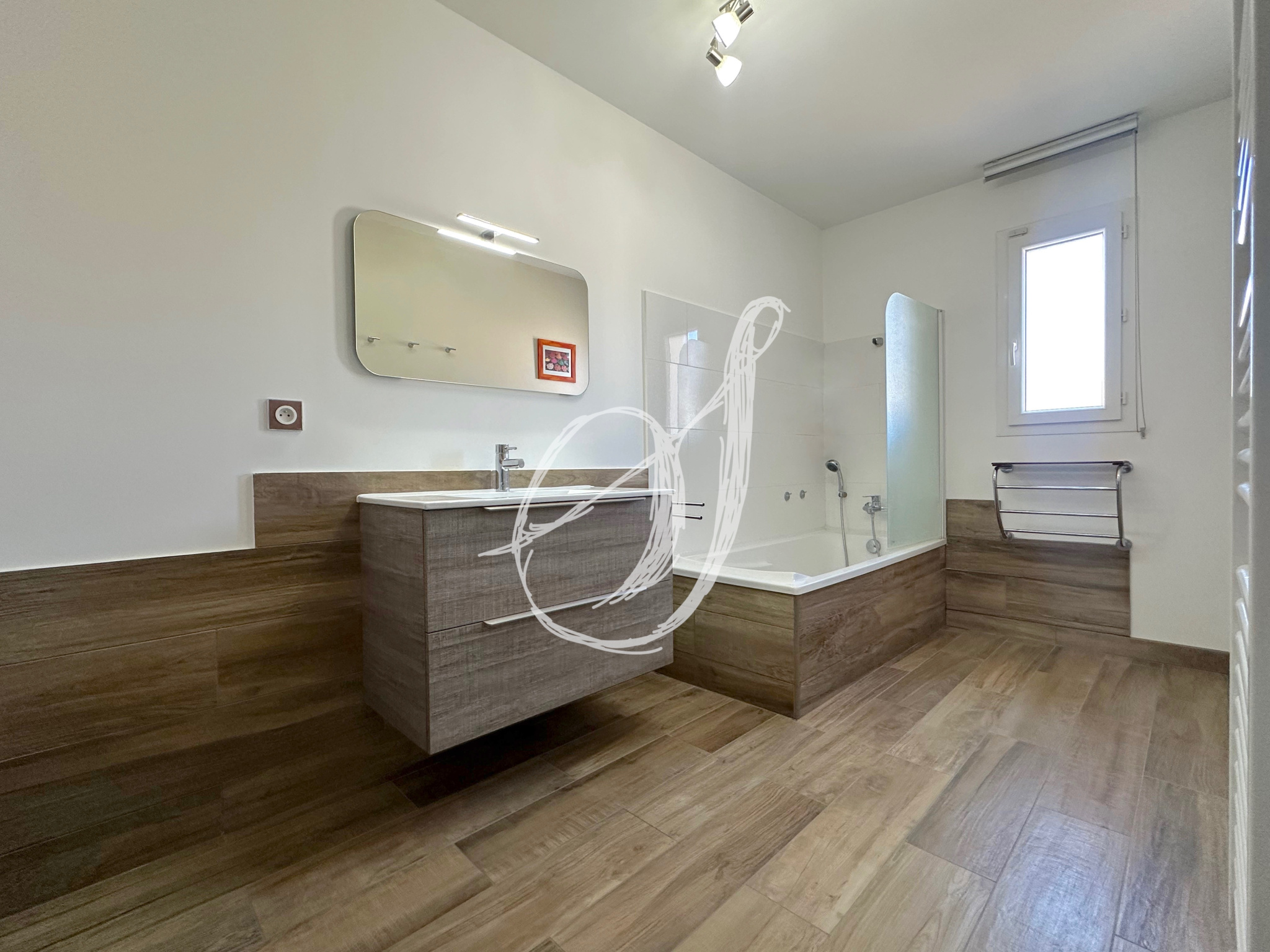 Dans un quartier résidentiel calme, cette villa de 2016 répond à la RT 2012. Au rez-de-chaussée, l'espace de vie de plus de 33 m2 bénéficie d'une cuisine entièrement équipée & s'ouvre sur terrasse & jardin. L'entrée dessert également des WC avec espace buanderie & un garage de près de 16 m2. À l'étage, on retrouve 3 chambres équipées de climatisation réversible, dont une avec dressing & une grande salle de bains avec WC. Le bien comprend deux emplacements de stationnement extérieurs en plus du garage.